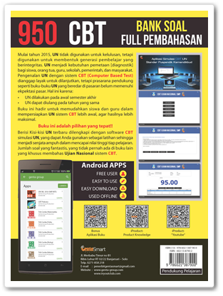 Buku ini hanya BONUS, yang wajib digunakan adalah Software CBT yang ada di dalam CD, karena akan membantu peserta tes siap menghadapi Ujian Nasional dengan sistem CBT. CD interaktif kami persembahkan khusus bagi siswa-siswi yang cerdas dan yang ingin cerdas. Buku dan CD interaktif ini memuat lebih dari 950 soal yang terdiri dari 5 paket, yaitu: