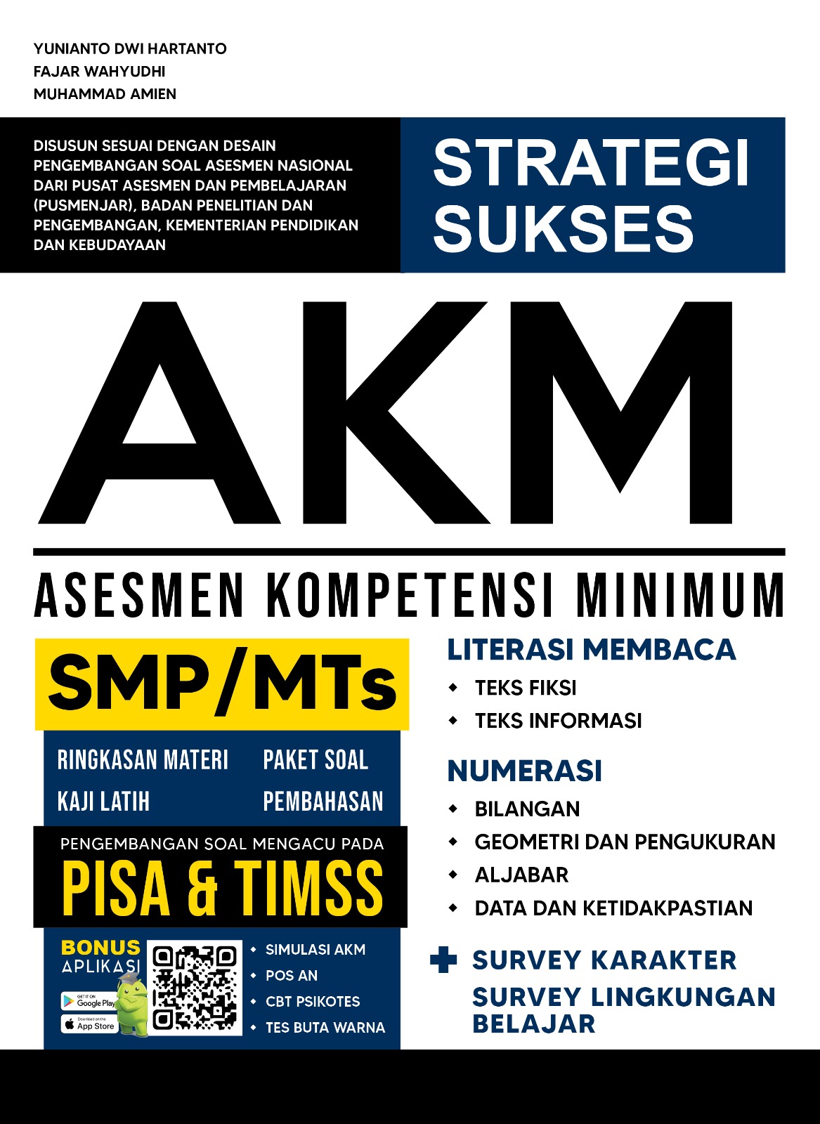 Soal-soal Asesmen Nasional memang lebih rumit dibanding dengan soal-soal ujian-ujian sebelumnya seperti Ujian Nasional, namun tidak perlu bingung dan risau. Soal Asesmen Nasional tidaklah sulit jika kita mengenali karakteristiknya. Nah, di buku ini kita akan diperkenalkan berbagai macam bentuk soal-soal AKM, SK, SLB sekaligus cara penyelesaiannya. Buku ini disusun berdasarkan indikator komptensi soal AKM dari Pusmenjar (Pusat Asesmen dan Pembelajaran). Soal-soal yang disajikan merujuk pada tipe soal yang digunakan PISA (Programme for International Students Assesment) dan TIMSS (Trends in International Matematics and Science Study). Bentuk soal pada buku ini beragam untuk melatih analisis berfikir tingkat tinggi atau HOTS. Jadi, belajarlah menggunakan buku ini dengan baik agar memperoleh pemahaman mengenai soal-soal Asesmen Nasional. Buku ini merupakan pilihan yang tepat bagi kalian dalam mempersiapkan ujian ANBK.