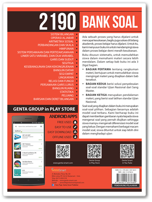 Buku dan aplikasi yang ada dalam buku ini memuat 2190 Butir Soal. Jumlah soal yang fantastis, yang tidak pernah ada di buku lain yang khusus membahas Matematika.