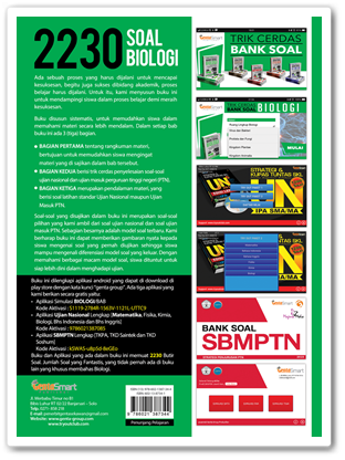 Buku dan Aplikasi yang ada dalam buku ini memuat 2230 Butir Soal. Jumlah Soal yang Fantastis, yang tidak pernah ada di buku lain yang khusus membahas Biologi.