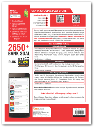 Berisi kisi-kisi Ujian Sekolah/Madrasah terbaru dilengkapi dengan software simulasi USM, yang dapat digunakan sebagai latihan sehingga menjadi senjata ampuh dalam mencapai nilai tinggi di tiap mata pelajaran.