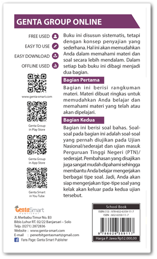 Buku ini disusun secara sistematis, tetapi dengan konsep penyajian yang sederhana sehingga akan memudahkan memahami materi dan soal secara lebih mendalam. Dalam setiap bab buku ini dibagi menjadi dua bagian.