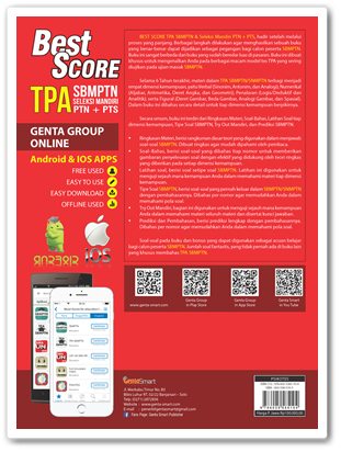 Best Score TPA SBMPTN ; Seleksi Mandiri PTN + PTS, adalah sebuah buku yang dirancang khusus untuk membantu calon peserta Tes Seleksi Perguruan Tinggi untuk mengenal dan mengukur kemampuan akademik. Persaingan untuk memasuki bangku perkuliahan makin ketat. Berbagai macam seleksi dilakukan untuk mendapatkan calon mahasiswa yang terbaik, tangguh, dan andal pada bidangnya. Salah satu model tes yang kerap kali dipakai oleh Perguruan Tinggi untuk melakukan seleksi mahasiswa baru adalah dengan Tes Potensi Akademik (TPA).