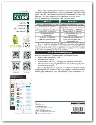 Buku ini sangat berbeda dari buku yang sudah beredar luas di pasaran, menyediakan materi untuk berlatih bagi calon peserta tes TOEIC.