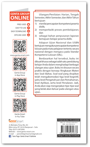 Buku ini dilengkapi aplikasi android + IOS yang dapat di download. Program Android+ IOS yang ada dalam buku ini dapat membantu untuk meningkatkan kemampuan akademik karena adanya sistem penilaian.