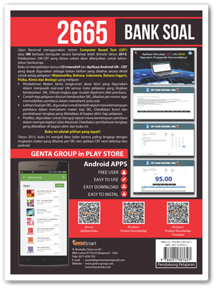 Buku ini menyediakan bonus CD interaktif dan Aplikasi Android UN – CBT yang dapat digunakan sebagai bahan latihan yang dibahas secara detail untuk setiap pelajaran (Matematika, Bahasa. Indonesia, Bahasa Inggris, Fisika, Kimia, dan Biologi) yang meliputi: